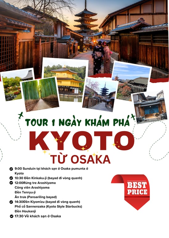 🏯 Kyoto – Cố đô hơn 1.000 năm, nơi lưu giữ tinh hoa văn hóa và kiến trúc Nhật Bản. Nổi bật với đền chùa cổ kính, rừng tre Arashiyama và những con phố cổ,